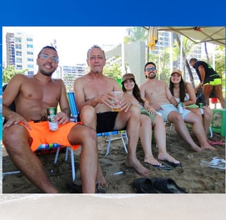 Muito pagode, churrasco e cerveja. Porque Futevôlei mesmo tava difícil viu.